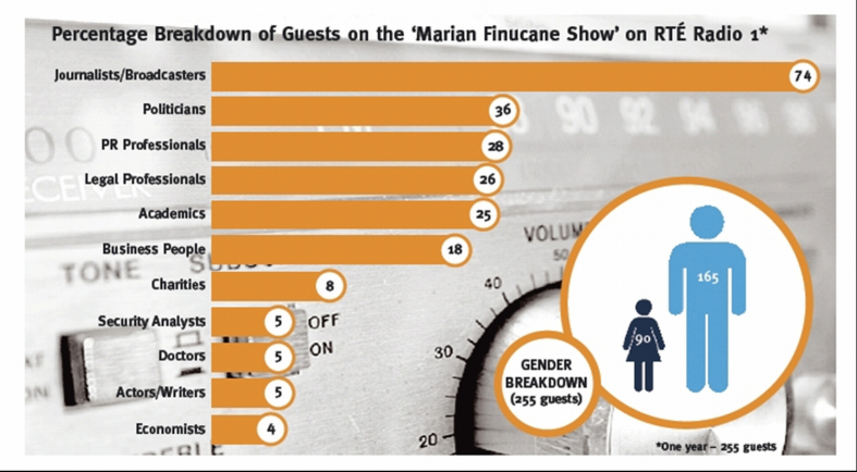 In the article he breaks down the professions represented in the panels over the course of one year. While the picture is a true reflection of the Marian Finucane programme it is also reflective of current affairs programmes across the three national stations given that the same guests appear all too regularly across the three stations.