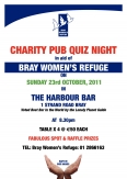 ON SUNDAY 23rd OCTOBER, 2011 IN THE HARBOUR BAR, 1 STRAND ROAD, BRAYVoted Best Bar in the World by the Lonely Planet Guide at 8.30pmTABLE X 4 @ €50 EACHFABULOUS SPOT & RAFFLE PRIZESTEL: Bray Women's Refuge: 01 286616Click here to see the full flyer...
