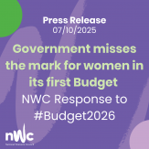 NWC welcomes investment in childcare, but warns that structural reform is missing Press Release, 7 October 2025 In response to Budget 2026 announced today (7 October), the National Women’s Council (NWC) welcomed investment in childcare and some targeted measures...